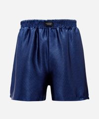 Cueca masculina confeccionada em tecido leve acetinado com padronagem geométrica. A peça possui modelo samba canção, cós elástico, caimento reto e solto e acabamento pespontado.
