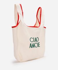 • Estampa frontal com a frase "Ciao Amore", que adiciona um toque divertido e romântico.
