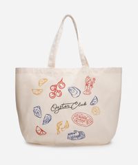 • Estampa frontal divertida com a temática "Oyster Club" e ilustrações coloridas de alimentos.