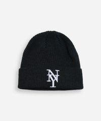 Gorro masculino confeccionado em tricot com toque macio. A peça possui tecido texturizado, acabamento canelado com dobra com escrita bordada em cor contrastante.