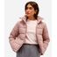 Jaqueta confeccionada em tecido plano leve com revestimento acolchoado. A peça possui capuz com cordão embutido, mangas longas, dois bolsos frontais com fechamento por zíper, comprimento alongado, forro e fechamento frontal por zíper.