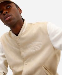 Renove seu visual com esta jaqueta bomber masculina, uma peça que une o estilo universitário clássico com um toque moderno. Confeccionada em malha com toque de suede, ela oferece conforto e um caimento levemente solto, ideal para criar sobreposições cheias de personalidade. Este casaco masculino é a escolha certa para quem busca versatilidade para os dias mais amenos.