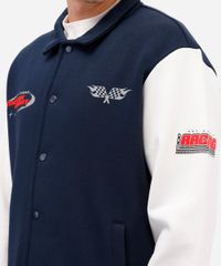 jaqueta college masculina de moletom felpado hot wheels azul