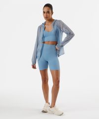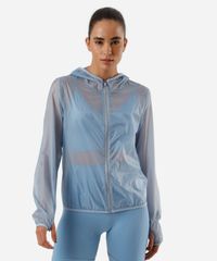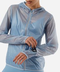 jaqueta corta vento feminino esportiva ace com capuz azul