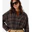 Jaqueta feminina confeccionada em tecido plano com estampa xadrez. A peça tem a modelagem acinturada, caimento solto ao corpo, com pregas no contorno da barra e comprimento cropped. O modelo tem gola esporte aplicada, fechamento por zíper e mangas longas. Possui forro em tecido plano.