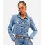 Deixe qualquer look especial com esta jaqueta jeans cropped. Essencial no guarda-roupa feminino, este modelo une a atemporalidade do jeans com a modernidade do comprimento mais curto, criando uma peça versátil e cheia de estilo. Confeccionada em tecido de algodão, ela oferece um toque macio e um caimento confortável para te acompanhar em diversas ocasiões.