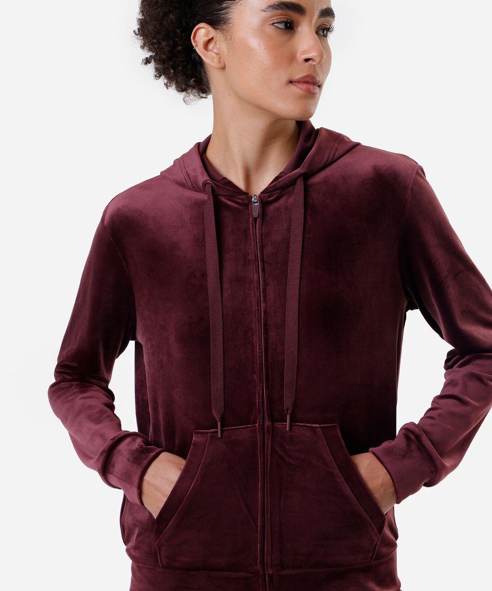 jaqueta de plush com capuz esportiva ace vinho