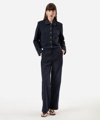 jaqueta feminina com bolsos azul