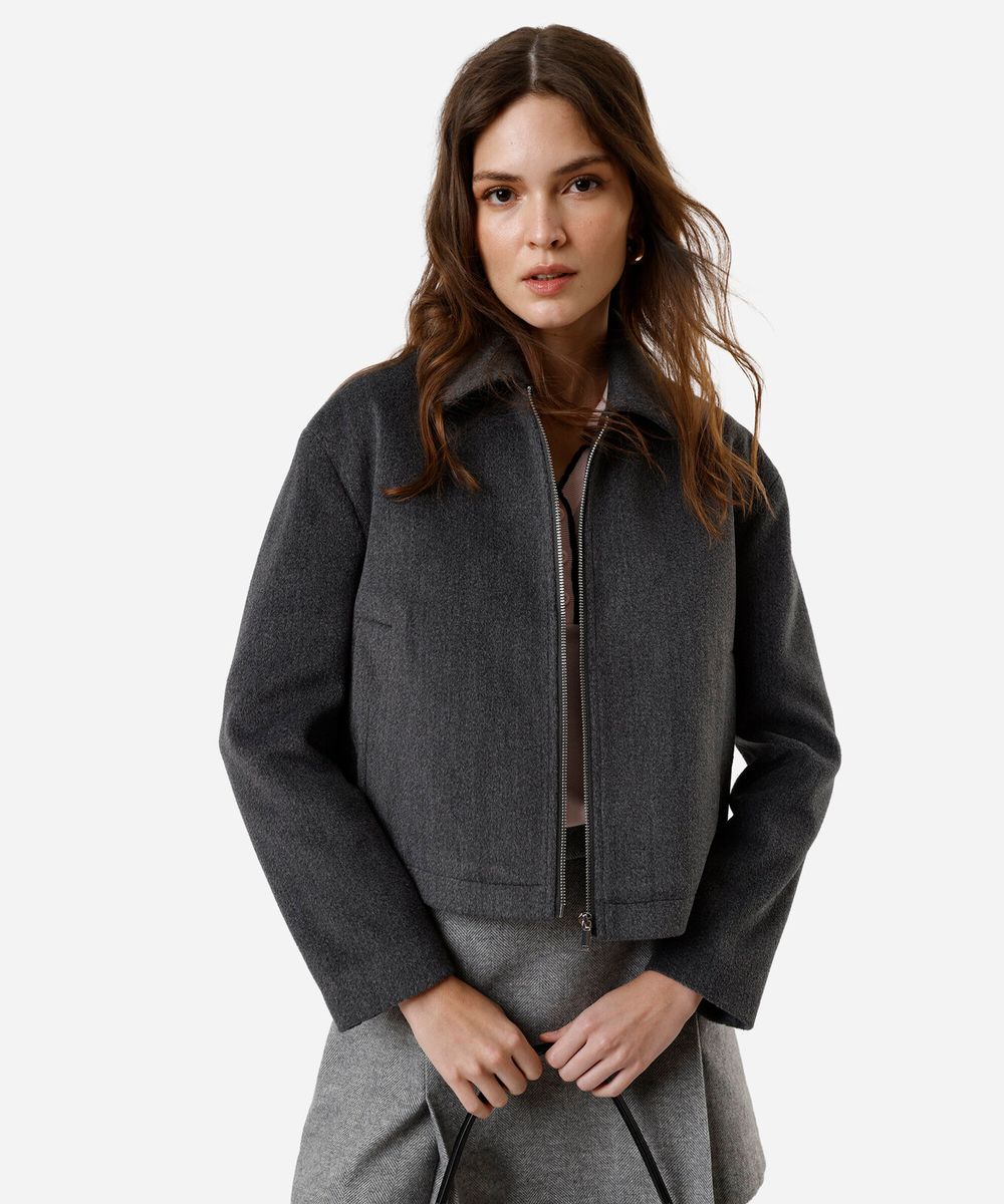 jaqueta feminina texturizada cinza