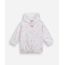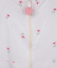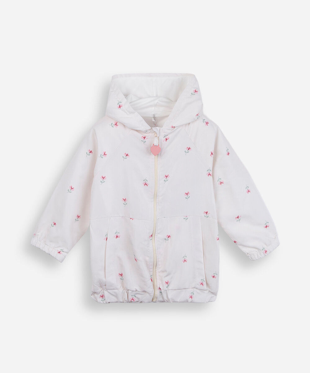 Jaqueta infantil confeccionada em tecido com toque leve e macio. A peça possui modelagem reta com caimento levemente, decote redondo com capuz, mangas longas, dois bolsos frontais, fechamento frontal por zíper, estampa com desenho de florzinhas em cores contrastantes, detalhe em recortes e elástico embutido no acabamento pespontado. Esta peça é toda forrada.
