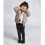 Jaqueta confeccionada em tecido leve com revestimento acolchoado, costura matelassê e estampa animal print. A peça possui capuz, mangas longas, dois bolsos frontais, caimento reto, forro e acabamento pespontado. Fechamento frontal por zíper.