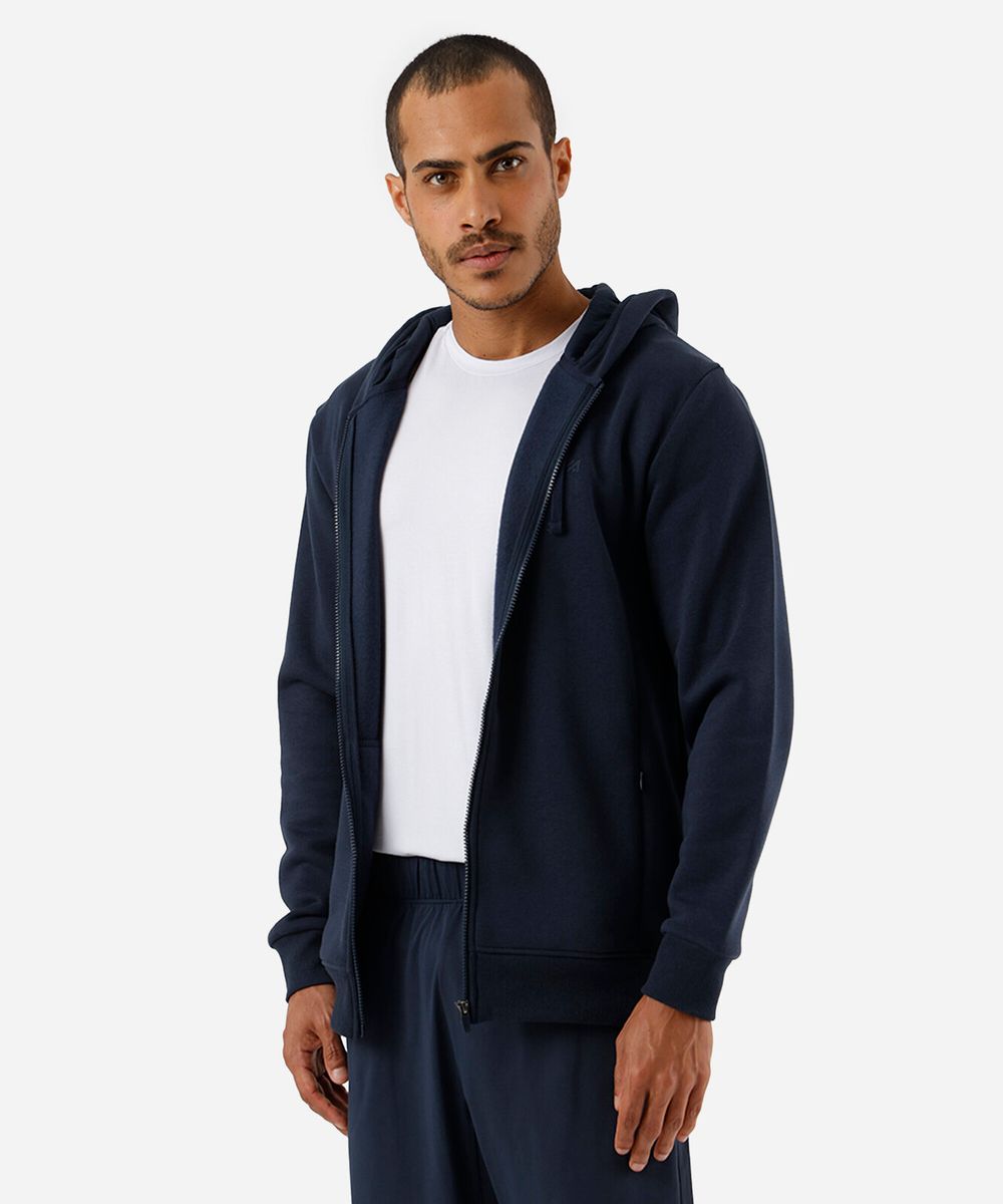 Para um visual esportivo completo, combine este casaco de moletom com uma calça de moletom da mesma linha e um tênis de performance. Se a ideia é um look casual para o cotidiano, ele fica ótimo sobre uma camiseta básica, com calça jeans e seu tênis favorito. É a terceira peça perfeita para adicionar conforto e um toque urbano às suas produções.