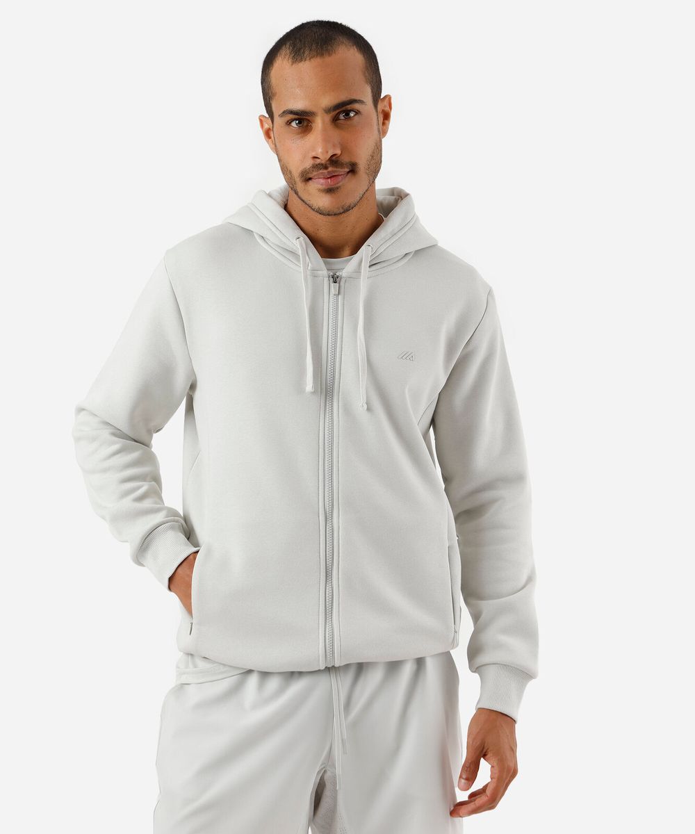 jaqueta masculina de moletom esportiva ace com capuz e bolso cinza