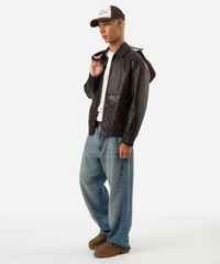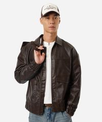 jaqueta masculina de poliuretano texturizada oversized marrom