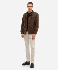 Para um visual casual e despojado, combine esta jaqueta com uma camisa masculina básica e uma calça jeans masculina de lavagem escura. Se a ocasião pedir um toque mais arrumado, use-a sobre uma malha de tricô com uma calça de sarja em tons neutros. É a peça perfeita para te acompanhar do trabalho ao happy hour, adicionando um toque de estilo utilitário às suas produções.