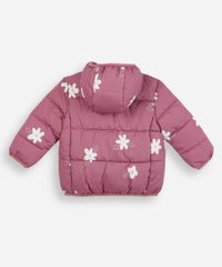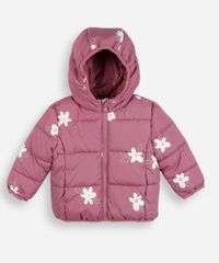 Jaqueta infantil confeccionada em tecido com toque leve e macio com enchimento. A peça possui modelo puffer com caimento reto, decote redondo com capuz, mangas longas, dois bolsos frontais, fechamento frontal por zíper, estampa com desenho de florzinhas em cores contrastantes, forro, detalhe em recortes e elástico embutido no acabamento pespontado. Esta peça é toda forrada. Peça super confortável para vestir em dias com temperaturas amenas e/ou frias como terceira peça. Composição: 100% poliéster. Instruções de lavagem: - Lavar à temperatura máxima de 30ºC, com centrifugação reduzida - Proibido o alvejamento - Secagem mecânica à temperatura baixa - Secagem em varal - Passar à temperatura baixa - Lavagem à seco com percloretileno