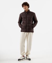 Jaqueta masculina confeccionada em tecido plano de poliéster com enchimento. Modelo puffer com modelagem reta e caimento confortável e solto ao corpo. Gola alta, mangas longas com elástico nos punhos para um ajuste ideal, dois bolsos frontais funcionais e fechamento frontal por zíper.