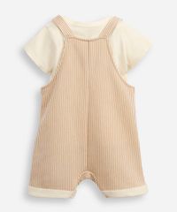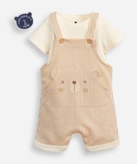 jardineira infantil listrado de urso com blusa bege
