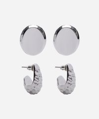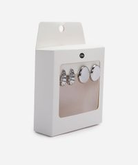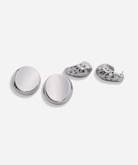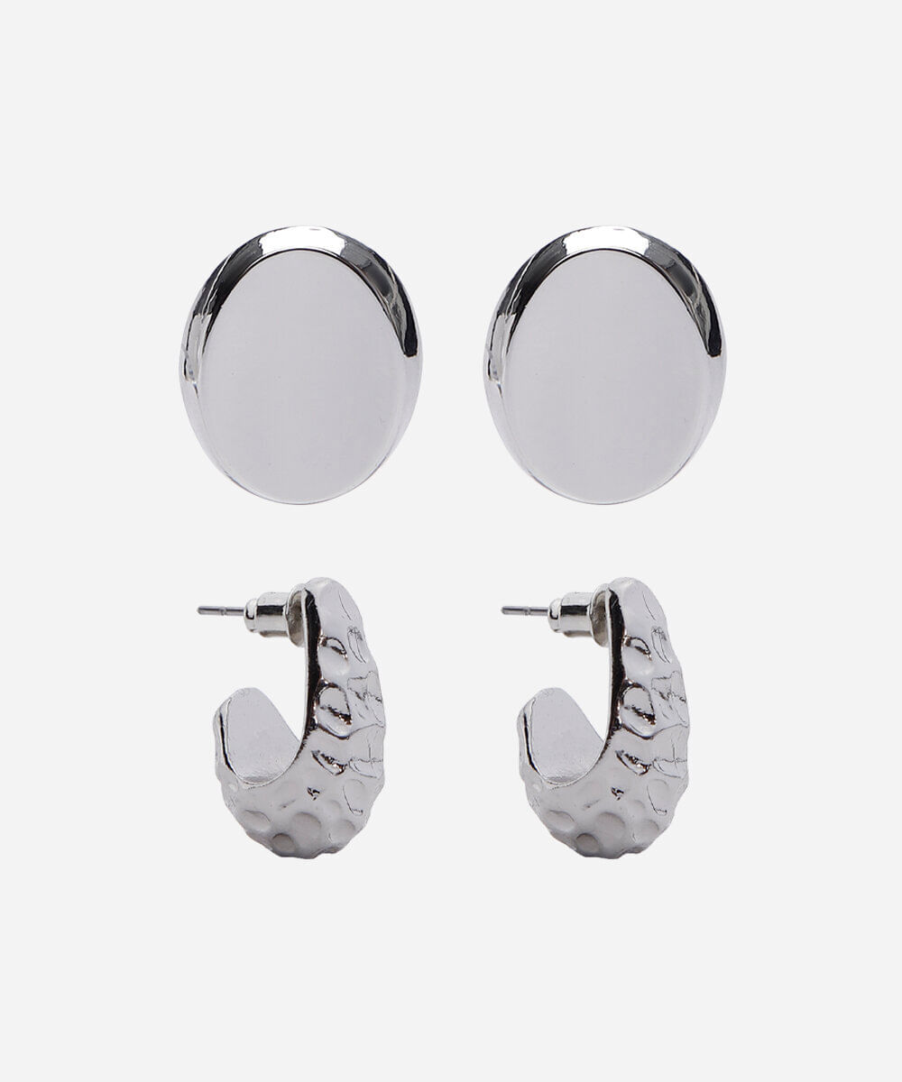 Kit de dois brincos desenvolvidos em metal e com banho prateado. Composto por dois pares com modelos diferentes de meia argolas orgânica e botão liso e fechamento prático por tarraxa, garantindo segurança e conforto durante o uso. Hipoalergênico e livre de níquel.