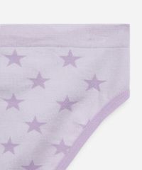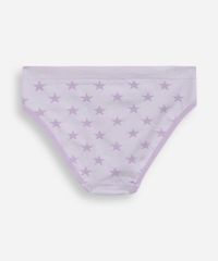 Kit de duas calcinhas infantis confeccionadas em malha de poliamida com estampa de estrelas. Os modelos são biquíni, com caimento ajustado, laterais largas e cobertura maior na parte posterior. Detalhe de acabamento sem costura.