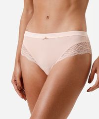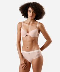 Kit de duas calcinhas femininas confeccionadas em malha de poliamida. Os modelo são caleçon, com caimento ajustado, laterais largas e maior cobertura na parte posterior. Possui forro higiênico em malha de algodão