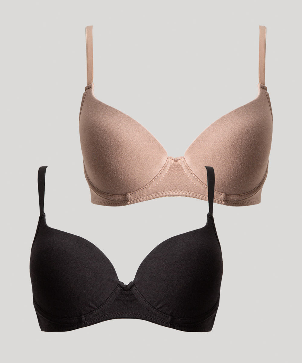 Kit composto por duas calcinhas desenvolvidas em malha de microfibra. A modelagem caleçon tem parte posterior e laterais grandes. O modelo invisível conta com um acabamento com costuras delicadas, minimizando a visibilidade através da roupa. Uma peça é na cor preta e a outra é na cor marrom. Ambas as peças possuem forro em malha de algodão.