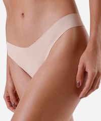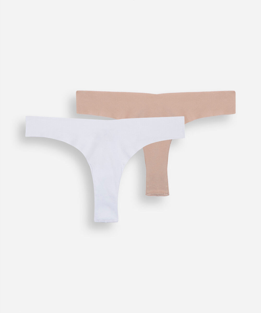 Kit de duas calcinhas feminina confeccionadas em malha de algodão. Os modelos são fio dental com caimento ajustado, laterais médias e menor cobertura posterior. Possui forro higiênico em malha de algodão e acabamento a fio nas extremidades.