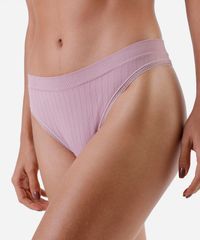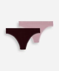Kit de duas calcinhas feminina confeccionadas em malha de poliamida. Os modelos são fio dental com caimento ajustado, laterais médias e menor cobertura posterior. Possui acabamento sem costura nas extremidades.