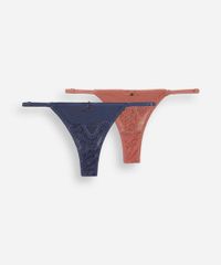 kit de 2 calcinhas fio dental string feminino com renda floral colorido