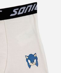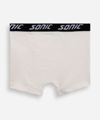 Kit infantil composto por duas cuecas confeccionadas em malha de algodão. As peça possuem modelo boxer, cintura média com cós elástico com nome do personagem, caimento reto e confortavelmente ajustável ao corpo, estampa do personagem "Sonic" e acabamento pespontado.