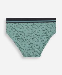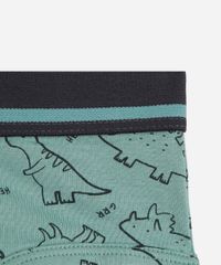 Kit de 2 cuecas infantis confeccionadas em algodão de toque macio. As peças possuem modelagem slip, contém uma lisa e uma estampada com diferentes desenhos de dinossauros, cintura média com elástico, laterais largas, detalhe de recortes e acabamento pespontado.