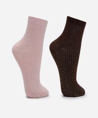 kit de 2 meias cano alto com lurex colorido - 34-39