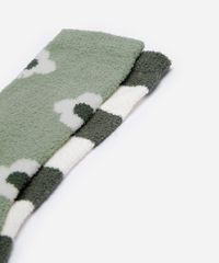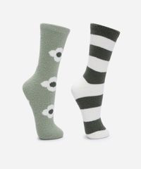 kit de 2 meias cano alto texturizada floral e listrado colorido - 34-39