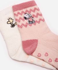 kit de 2 meias infantis cano alto com antiderrapante snoopy e woodstock colorida