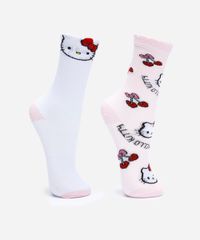 kit de 2 meias infantis cano alto hello kitty colorido