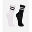 • Kit com 2 pares de meias, um par na cor preta com listras brancas e outro na cor branca com listras pretas.