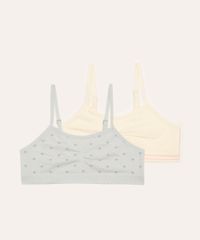 Pensado para oferecer conforto e segurança nos primeiros anos, este kit de sutiãs infantis é a escolha ideal para o dia a dia. Confeccionado em um tecido macio e flexível, ele se ajusta delicadamente ao corpo, permitindo total liberdade de movimentos para todas as atividades. O design de top é moderno e prático, perfeito para ser a primeira peça de moda íntima.