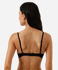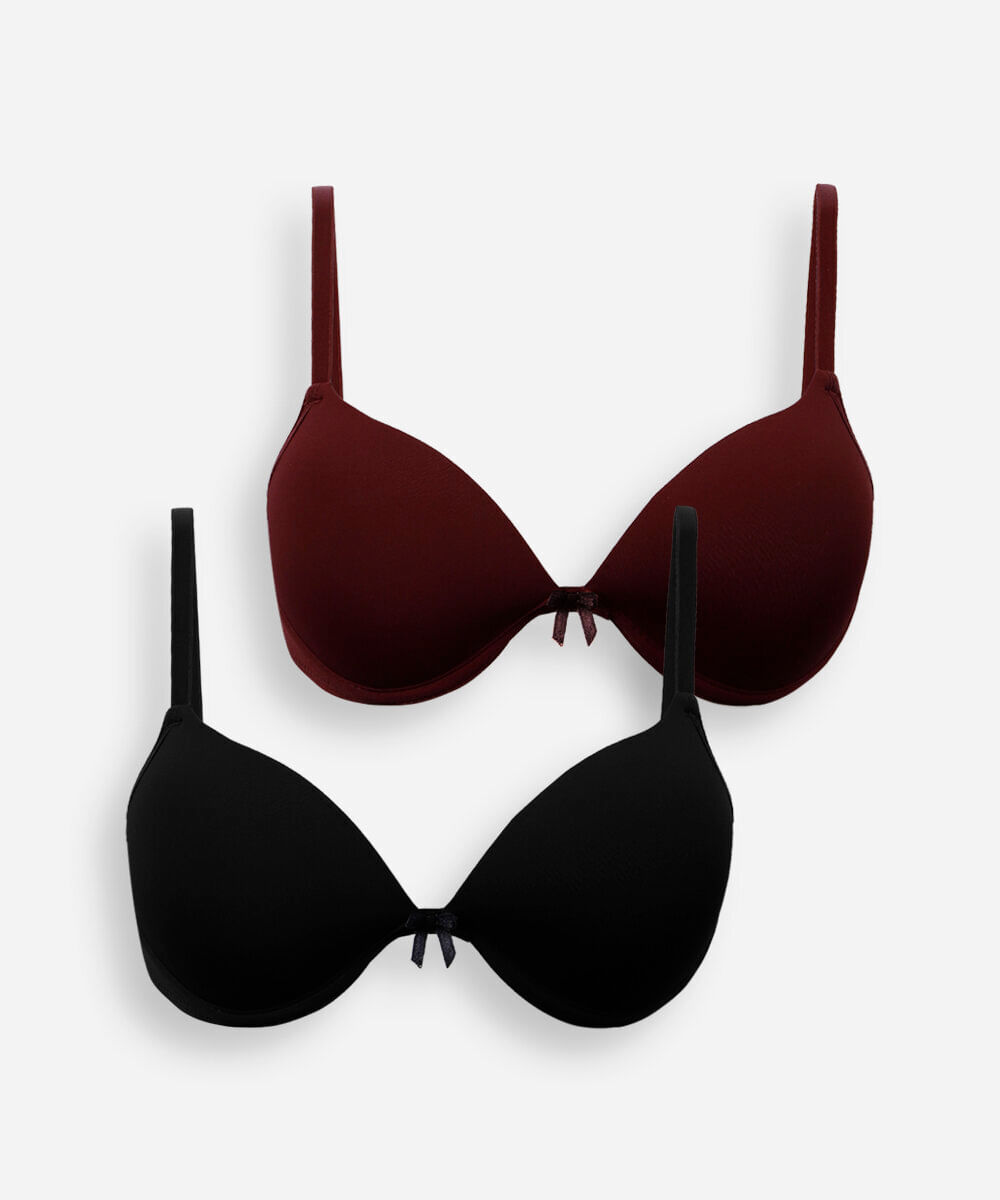 Kit de 2 sutiãs feminino confeccionado em malha de poliamida. Os modelos são meia taça, com caimento ajustado ao corpo, bojos fixos, aros, alças finas ajustáveis e fechamento por colchetes com níveis de ajuste.