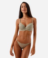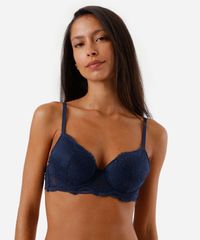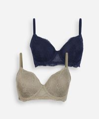 Kit de dois sutiãs feminino confeccionado em renda com padronagem floral. Os modelos são meia taça, caimento ajustado, bojos, aros e para melhor sustentação. Possuem alças finas ajustáveis e fechamento por colchetes com níveis de ajuste.