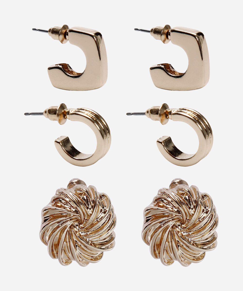 kit de 3 brincos dourado - UNICO