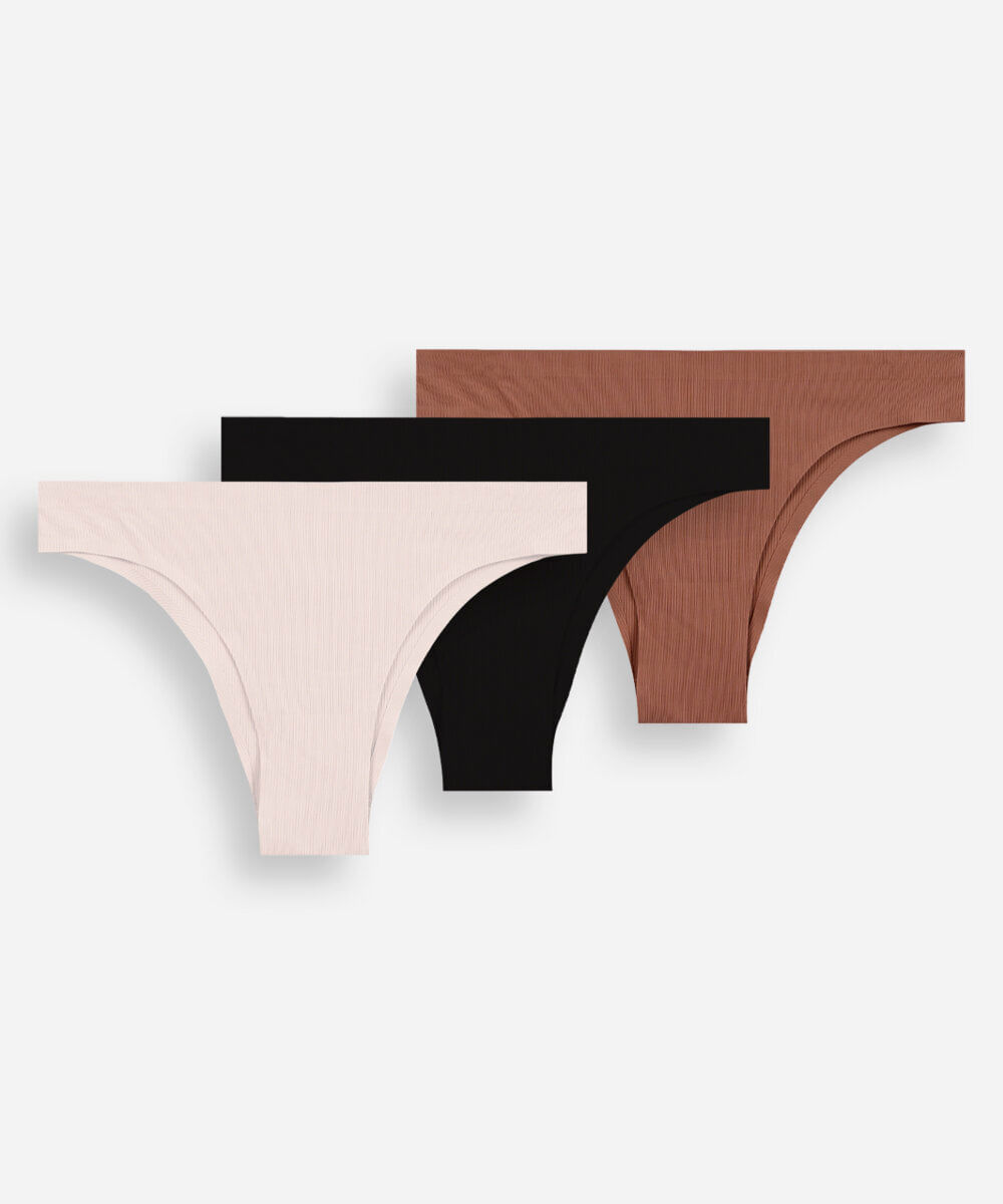 kit de 3 calcinhas biquíni canelada sem costura colorido
