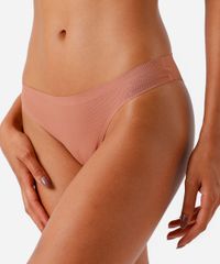 Kit de três calcinhas confeccionadas em malha canelada. As peças possuem modelo biquíni, laterais largas, cós com elástico embutido, forro íntimo em algodão e acabamento sem costura. Composição: 90% poliamida 10% elastano Modelo veste: P Medidas da modelo - Altura: 1,73m Busto: 86cm Cintura: 70cm Quadril: 101cm. Instruções de lavagem: - Lavar à mão - Proibido o alvejamento - Não secar em tambor - Secagem em varal por gotejamento - Não passar - Não lavar à seco - Limpeza à úmido processo normal
