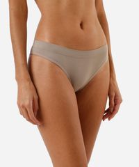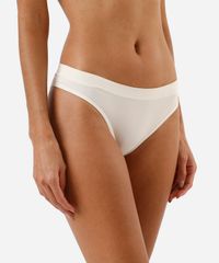 Kit de três calcinhas feminina confeccionado em malha de poliamida. Os modelos são biquíni com caimento ajustado, cós elástico, laterais médias e maior cobertura posterior.