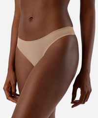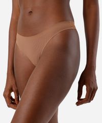 Kit de três calcinhas feminino confeccionado em malha de poliamida canelada. Os modelos são fio dental com caimento ajustado, cós elástico, laterais médias e acabamento selado. Possui forro higiênico em malha de algodão. Composição 90% poliamida 10% elastano Modelo veste: P/38 Medidas da modelo: Altura: 1,80m Busto 79cm Cintura: 60cm Quadril: 89cm Instruções de lavagem: - Lavagem manual - Não alvejar - Não secar em secadora - Secar na vertical - Não passar - Não lavar à seco