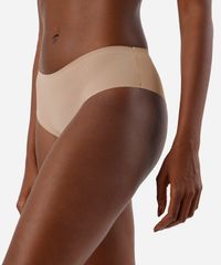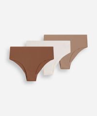 Kit de três calcinhas feminino confeccionado em malha de poliamida canelada. Os modelos possui caimento ajustado, cós elástico, laterais largas e acabamento selado. Possui forro higiênico em malha de algodão. Composição 90% poliamida 10% elastano Modelo veste: P/38 Medidas da modelo: Altura: 1,80m Busto 79cm Cintura: 60cm Quadril: 89cm Instruções de lavagem: - Lavagem manual - Não alvejar - Não secar em secadora - Secar na vertical - Não passar - Não lavar à seco