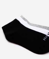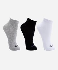 Kit com 3 pares de meias confeccionadas em malha com algodão. Os modelos são cano médio, com caimento ajustado e acabamento canelado na parte superior.