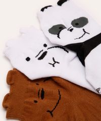 • Kit com 3 pares, cada um com a estampa de um personagem diferente: Pardo, Panda e Polar.