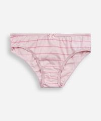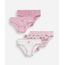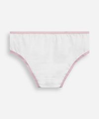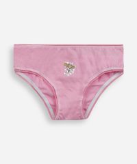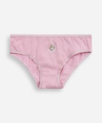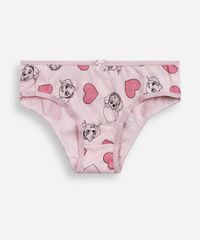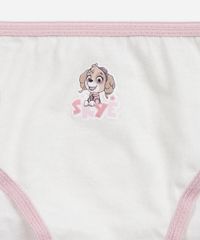Kit de cinco calcinhas infantis confeccionadas em malha de algodão. O kit possui modelagem tanga, as peças tem elástico aplicado e laterais estreitas, estampa frontal da personagem "Skye" e acabamento pespontado.