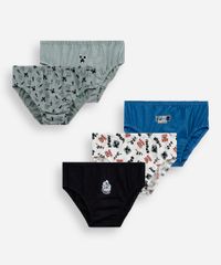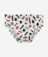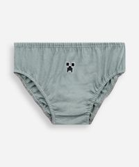 Kit de cinco cuecas infantis confeccionadas em malha de algodão. O kit possui modelagem slip, as peças tem elástico aplicado e laterais estreitas, estampa do personagem "Minecraft" e acabamento pespontado. Composição: 100% algodão Instruções de lavagem: - Temperatura até 40º - Não alvejar - Não secar em secadora - Secar na vertical - Passar em temperatura média - lavar à seco