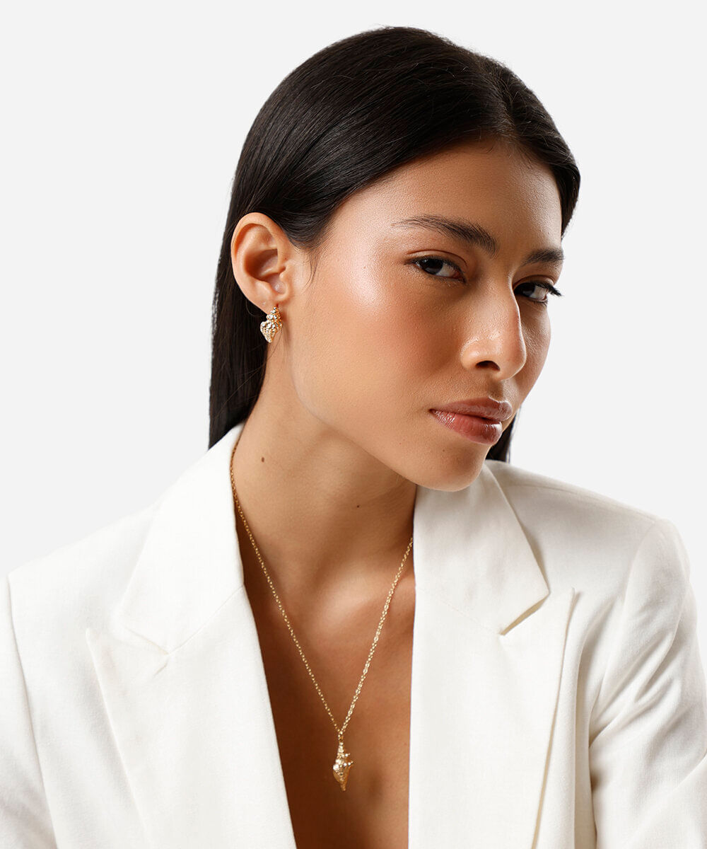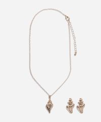 • Design inspirado no mar, com colar e brincos em formato de concha com acabamento texturizado.